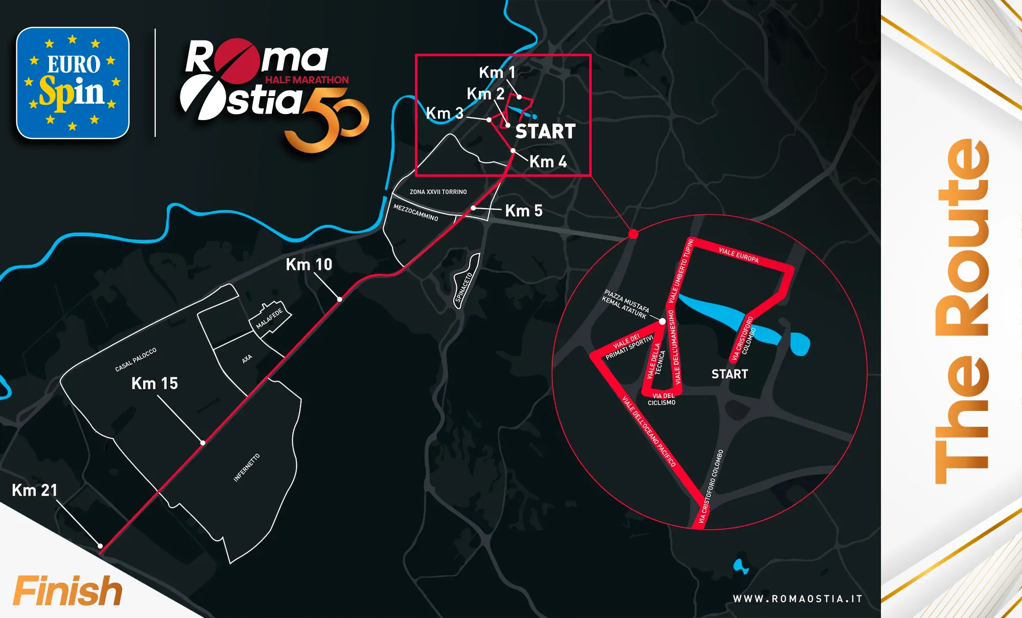 Un viaggio podistico che parte dal cuore dell’Eur e corre verso il mare: scopri ogni dettaglio del tracciato della gara.